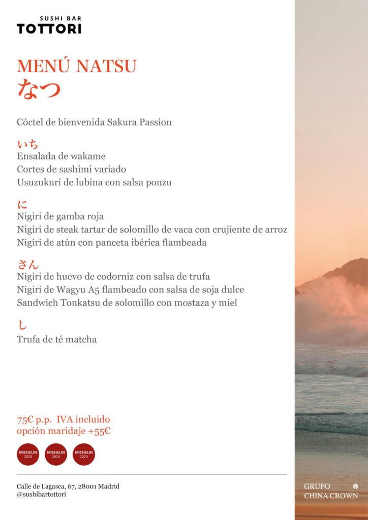 En Sushi Bar Tottori Lagasca, el verano se celebra con palillos, maridaje y una propuesta que lo tiene todo: frescura, técnica y sabor. Su nuevo Menú Natsu es un homenaje a la estación más vibrante del año, servido en clave japonesa y pensado para quienes se quedan en la ciudad… y saben disfrutarla.